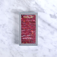 Ingredients: Sugar, 15% Pistachio, water, corn starch, colorant, flavoring (pomegranate), acidity regulator.